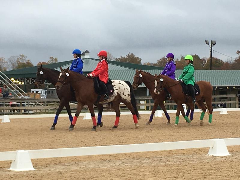 We like doing fun things like putting together a Quadrille! This Quadrille was ridden in honor of Colonel Wilbur Speer and his wife Linda who has been the life-force behind the PVDA Clarksville Chapter for thirty years. Two of our riders were original riders in our very first quadrille, one horse remains with us (Smoky Cody 288), and then there's Athena who was sidelined with an injury so our very own Cathy Lacey filled in.